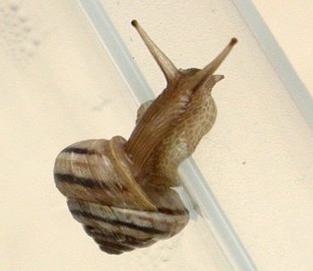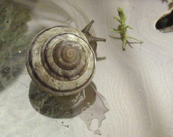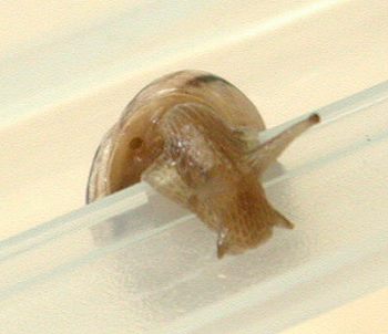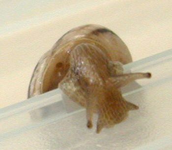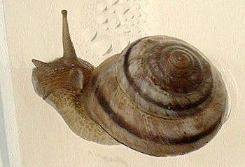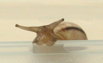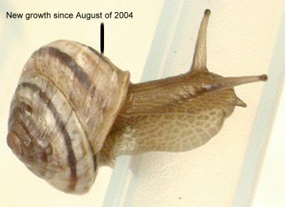 Oreo survived the winter. He had a very quiet time. He/she would hibernate for about 14 to 23 days at a time. When awakening he would eat lettuce, spirulina powder, and his favorite - oatmeal porridge. He would only stay active for a day or two - never more! Starting about the middle of March Oreo started to wake up after about 5 to 10 days of hibernation. He then feeds and drinks for about 5 to 8 days at a time. Question?? How did he recognize the change of seasons when his home, food supply and temperature remained constant? Oreo has grown a bit more shell. If you look closely at his shell you will see the new growth where the dark brown stripe is lighter in colour.